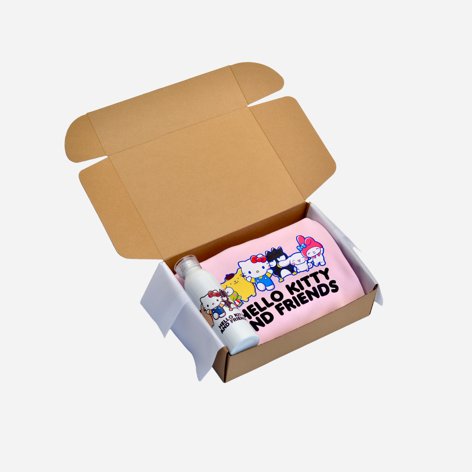 Polerón canguro más botella de agua Sanrio. Incluye caja de presentación y tarjeta con motivo a elección (cumpleaños celeste, cumpleaños rosa, Love yourself o For you). ¡Puedes agregar mensaje personalizado a tu tarjeta!